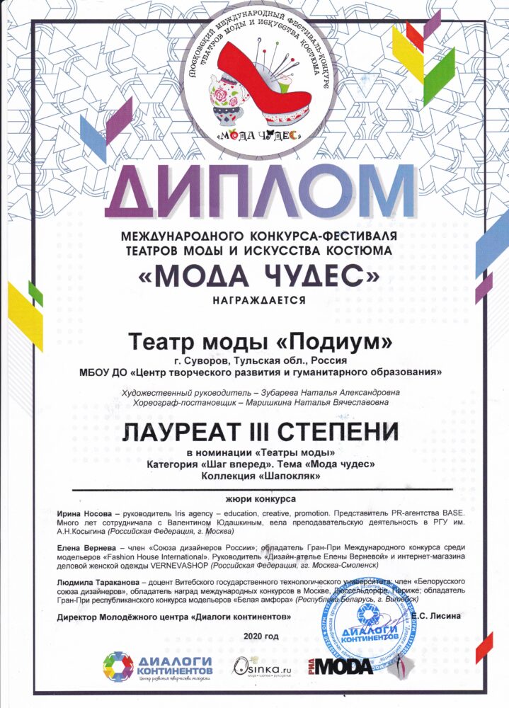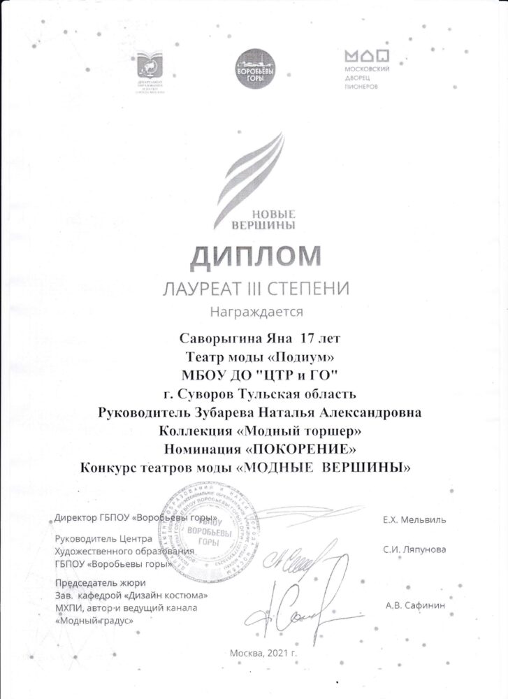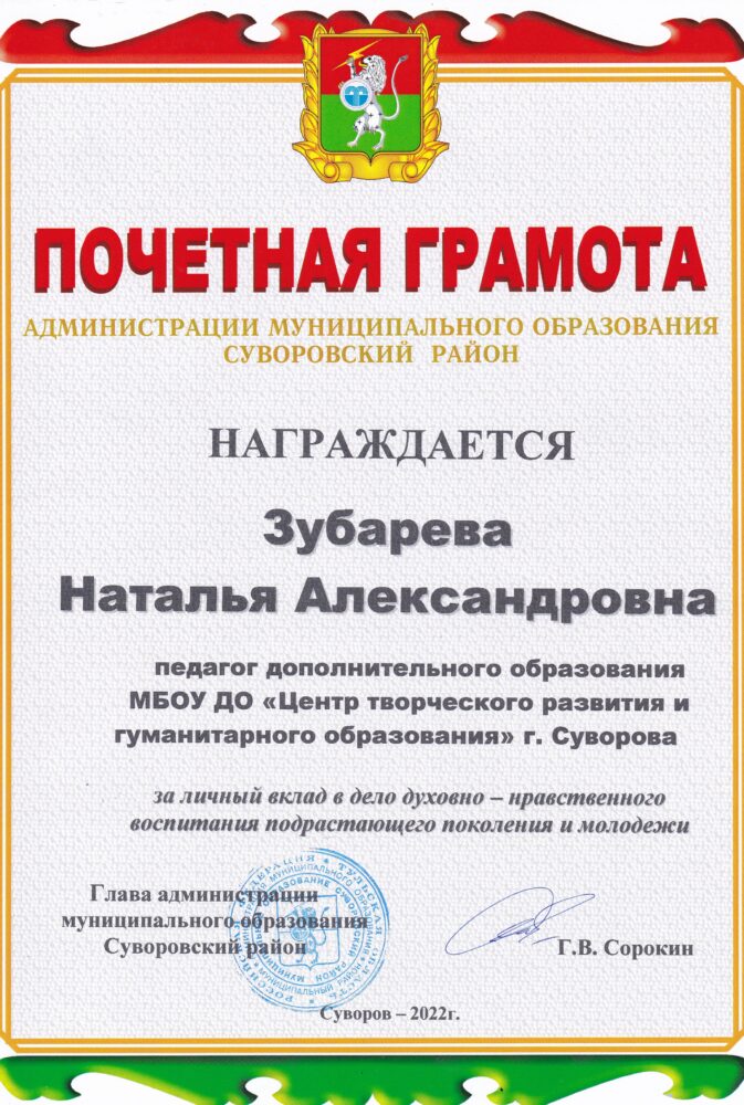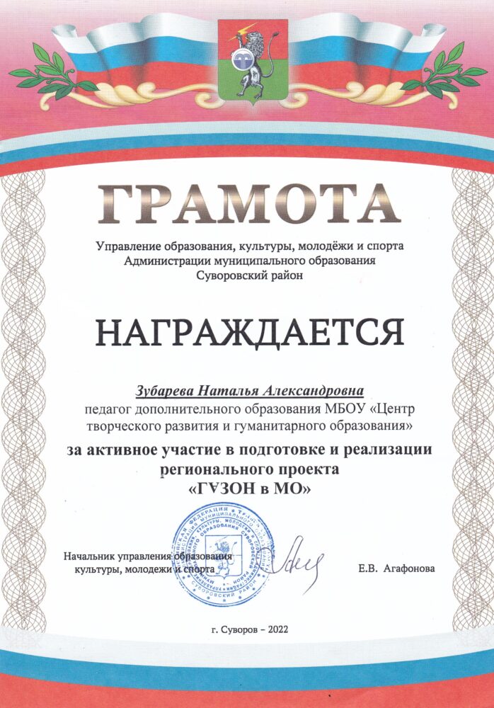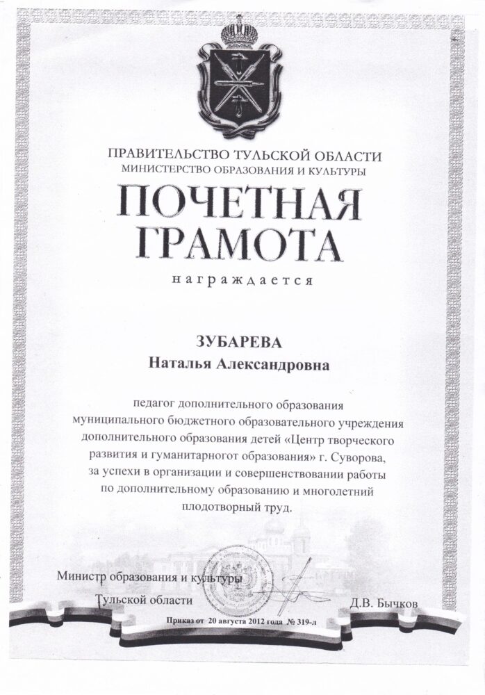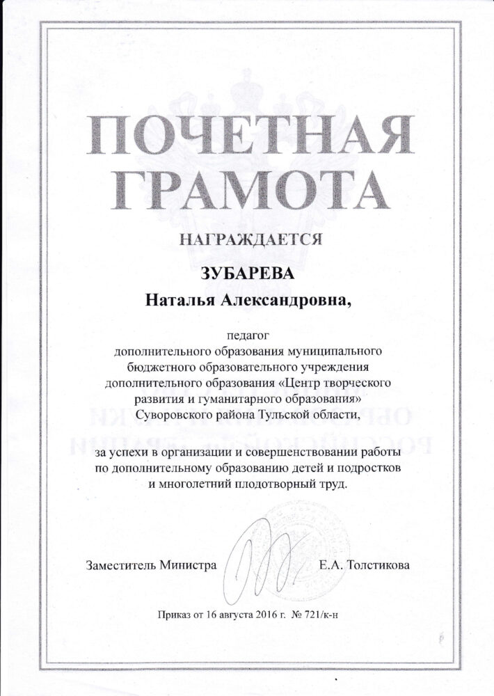 Зубарева Н.А. грамоты, дипломы, благодарственные письма