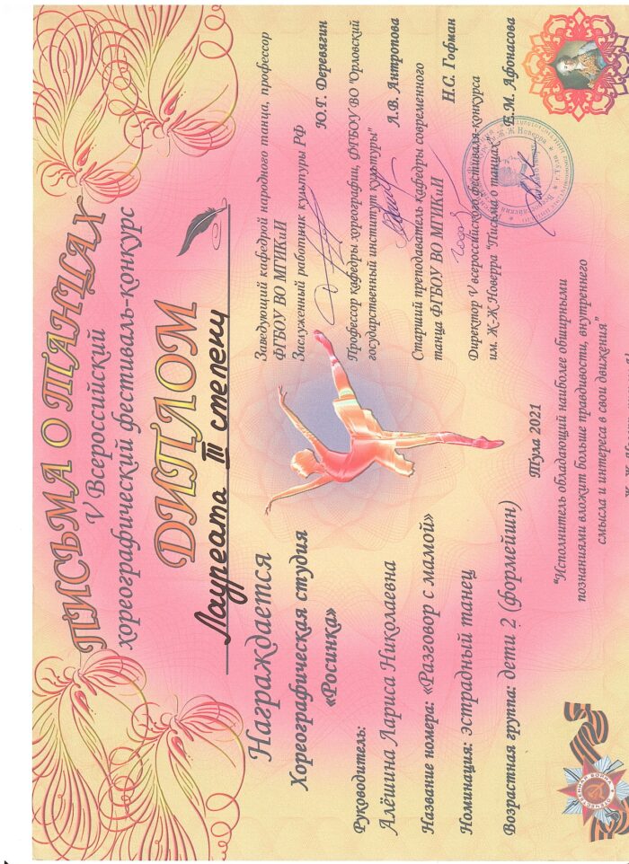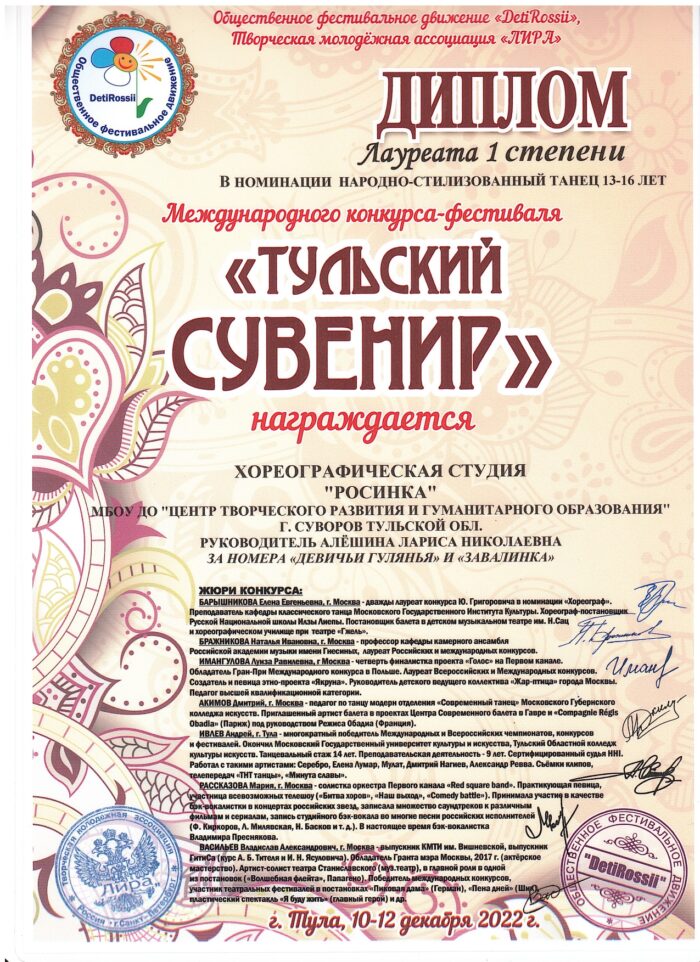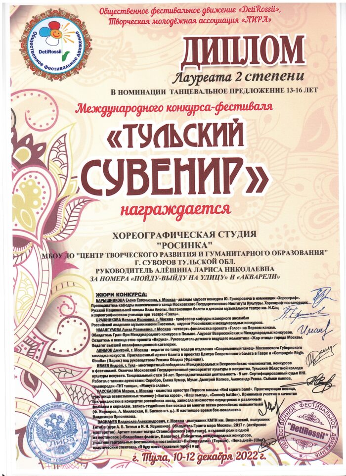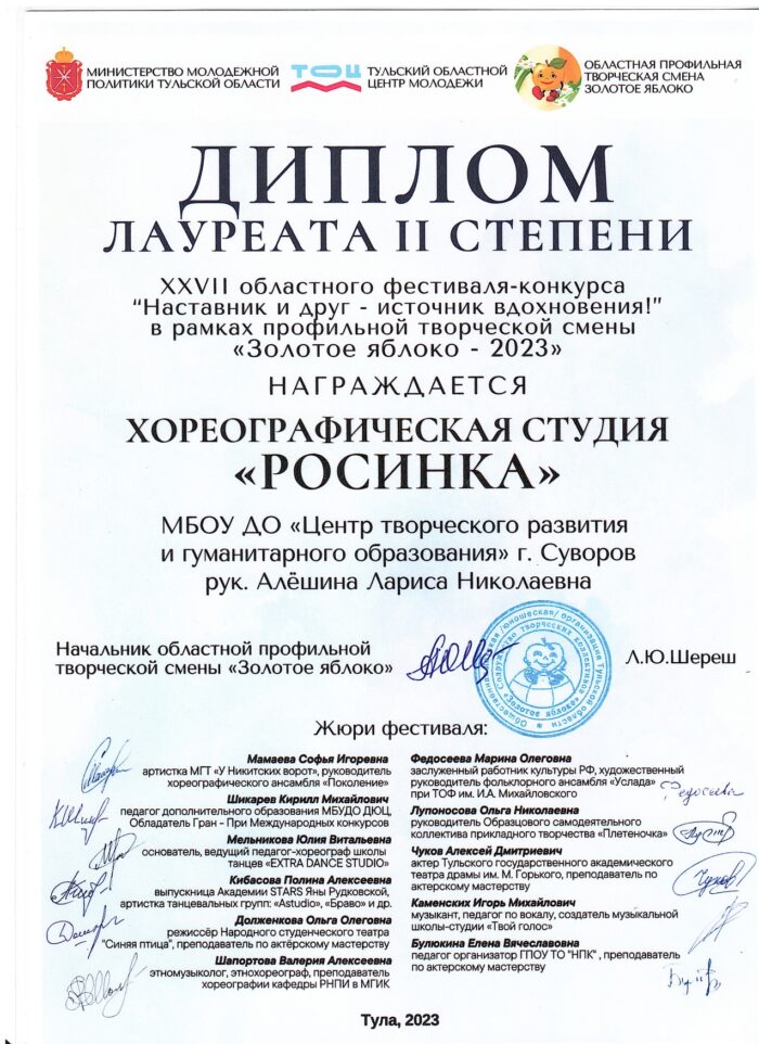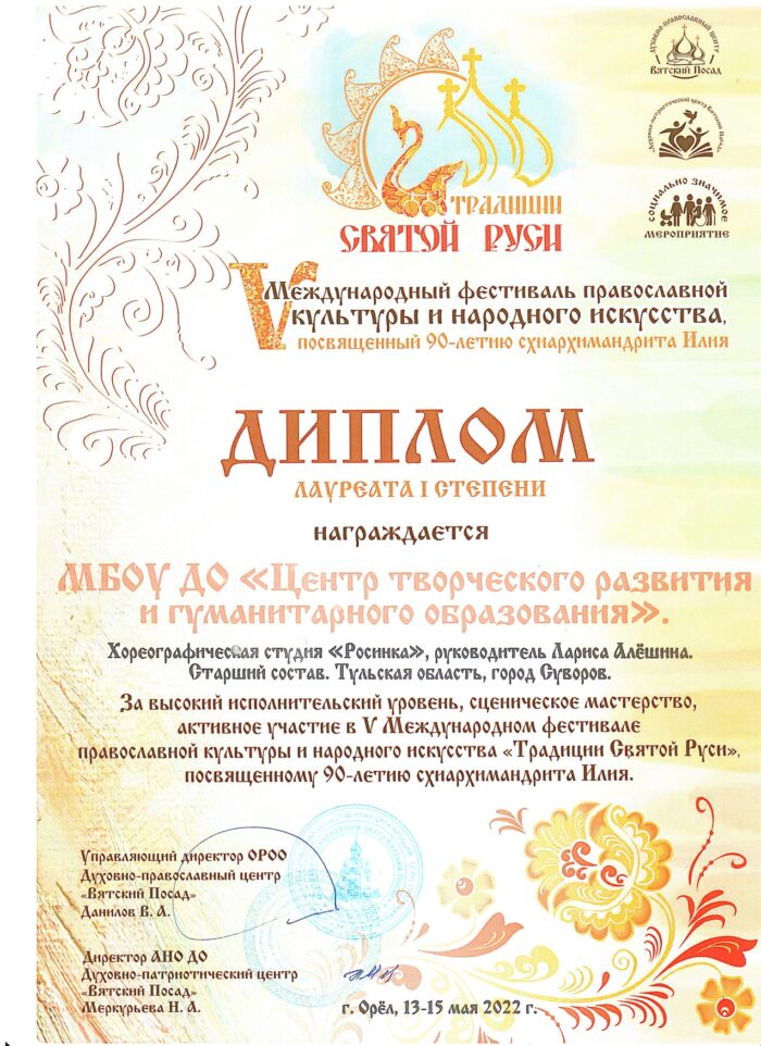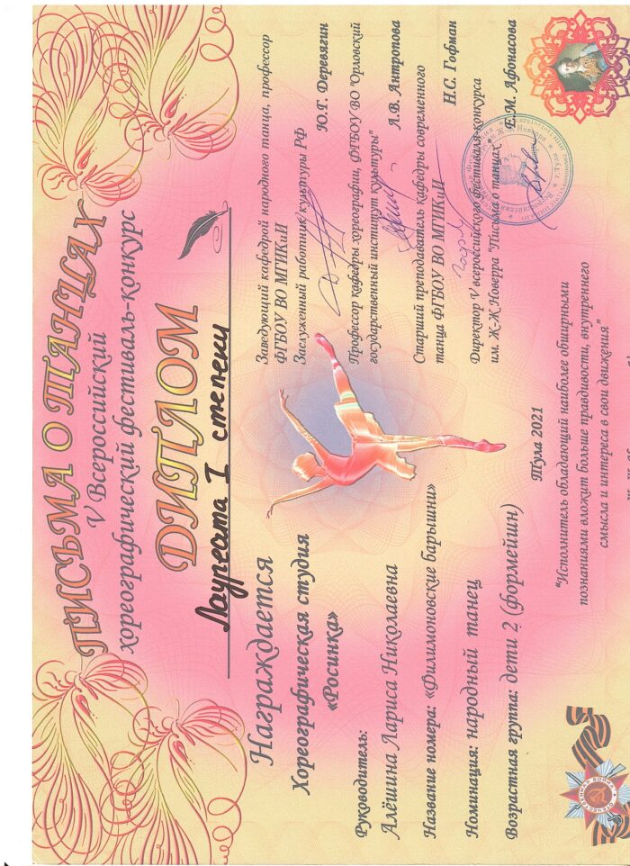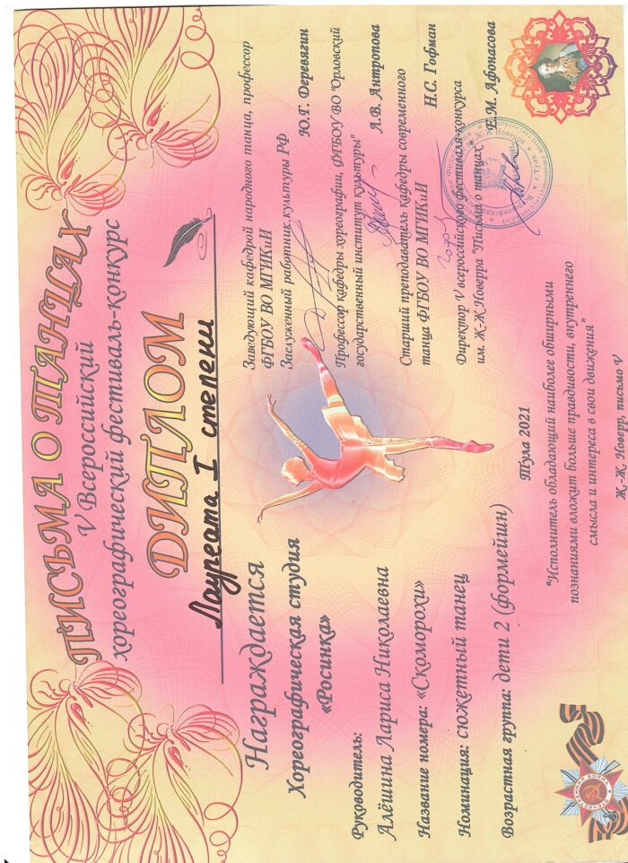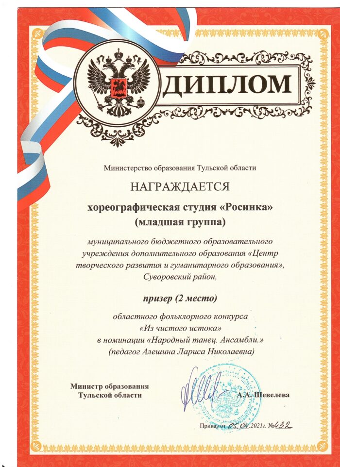 - Почетная грамота Департамента образования Тульской области (приказ № 768 от 12.07.2006 г.)