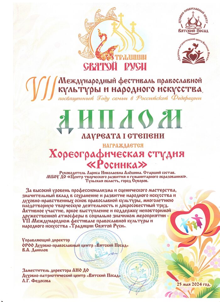 - Почётная грамота администрации муниципального образования Суворовский район,2024г.